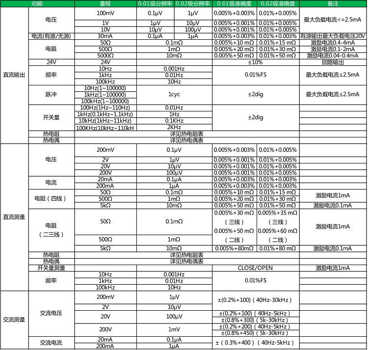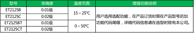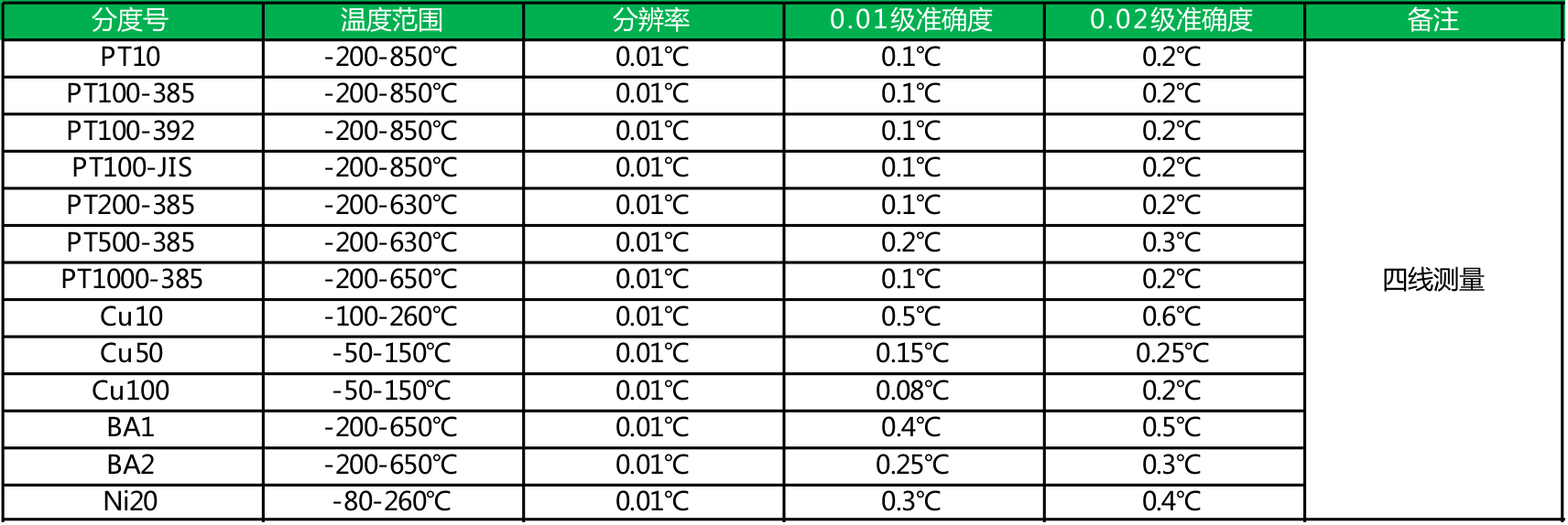 ● 精度为0.01%、0.02%两种;